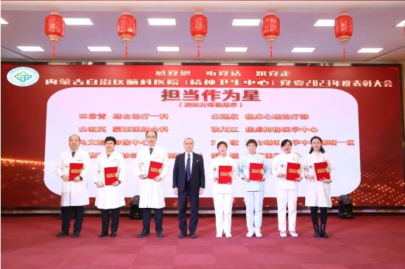 陈丽霞书记指出,2023年在自治区卫健委党组的坚强领导下,医院新任党委班子认真贯彻落实党的二十大精神,深入开展学习贯彻习近平新时代中国特色社会主义思想主题教育、“感党恩、听党话、跟党走”群众教育实践活动,充分发挥把方向、管大局、作决策、促改革、保落实的领导作用,把支部建在科室上,树立重效率、重实干、重实绩的正确导向,抓实作风建设,着力解决医院存在的“三多三少三慢”和“慢、粗、虚”问题,以“六个跑起来”为抓手推动全院全面提标提速提效。乘着京蒙协作“医疗倍增”计划的东风,脑科医院标志性项目在医院落地生根,“高水平脑科医院+区域精神卫生医疗中心”战略布局从“规划图”落地为“施工图”。“以患者为中心”狠抓医疗质量安全,持续改善医疗服务,大力开展医德医风专项行动,人民群众就医体验和获得感不断增强。开展为期3年的专科建设,亚专科差异化发展,学科能力、水平和竞争力明显提升。启动运营管理改革项目,打造自治区运营管理标杆。优化科研体系,国家精神心理疾病临床研究中心分中心正式挂牌,提升全区精神卫生服务能力,贯彻落实《内蒙古自治区精神卫生条例》,积极探索“党建+心理健康”新模式,搭建起全区社会心理服务体系网络上的党建联盟,凝心聚力做好“两件大事”。坚持为党育人,厚植成才沃土,医院获批内蒙古医科大学第三批虚拟教研室、“一站一经典”心理健康教育重点项目。实施人才培养战略,大力推动干部队伍建设。