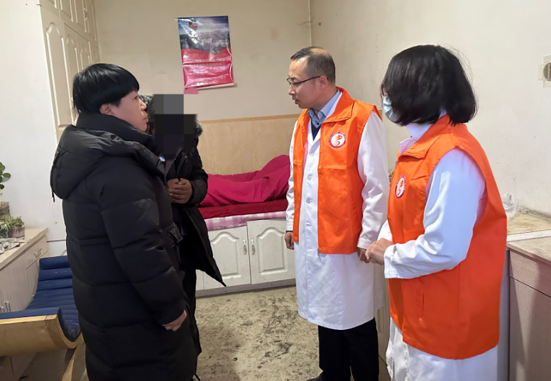 最近虽是“速冻”天气,未能阻挡帮助于女士的决心和脚步,1小时13分钟的车程,在太阳落山前,赶到了于女士的家中。3位专家对患者进行了详细的诊疗,查阅了患者以往的住院病历,收集了相关资料,并详细询问患者的一些近况做出了明确诊断,又询问了他们一家人的生活情况及目前的困难,鼓励他们要积极管理患者,多给予患者生活上的关心和照顾,坚持治疗。于女士激动地热泪盈眶,对医院一再表示感谢,说丈夫发病耳朵都冻伤了,但又送不到医院,往车里推时把车门都给弄坏了,一家人干着急没办法。肉漫屋