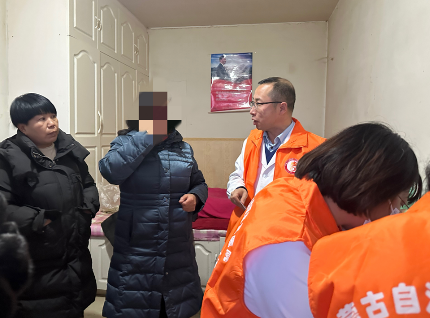 通过与当地残联取得联系,了解到以上情况,院党委及医院决定为患者上门做残疾鉴定,为群众解决实际困难,第六党支部党员白志坚、张文静、李辉、杜晓丽、尚秀姸5人组队安排好工作,冒着严寒驱车赶往于女士所在的波林岱村。