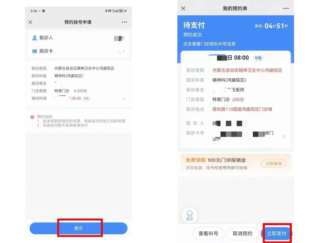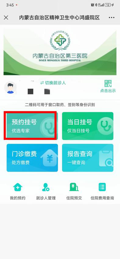 ”公众号,点击“预约挂号”,点击“我知道了”,选择“鸿盛院区”