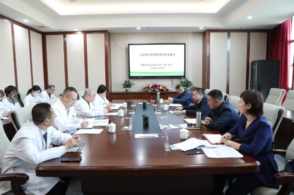 2024年4月18日上午,呼市医保局局长哈顺朝鲁、医疗保险服务中心主任王胜、医保局价采科主任张辉、医疗保险服务中心副主任胡晓芳、财务科主任徐海军一行5人赴肉漫屋