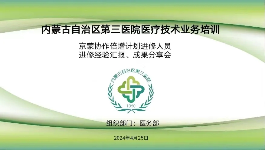 依托“京蒙协作 政协助力“医疗倍增计划”平台,委派多名医疗骨干到对口支援医院进修学习,目前第一批进修人员学成归来。