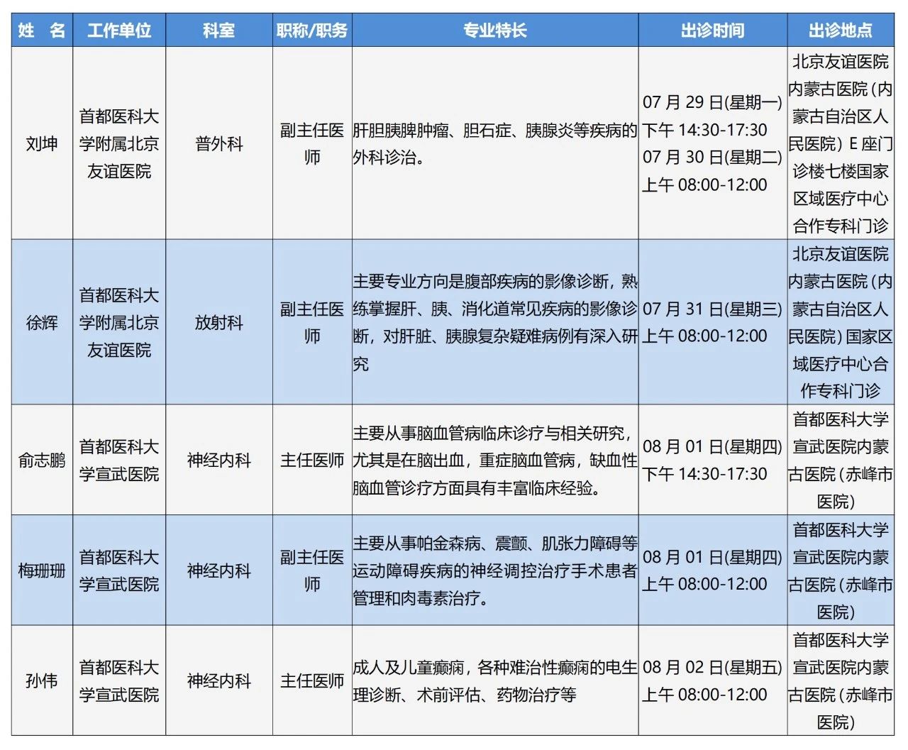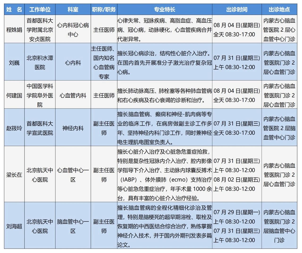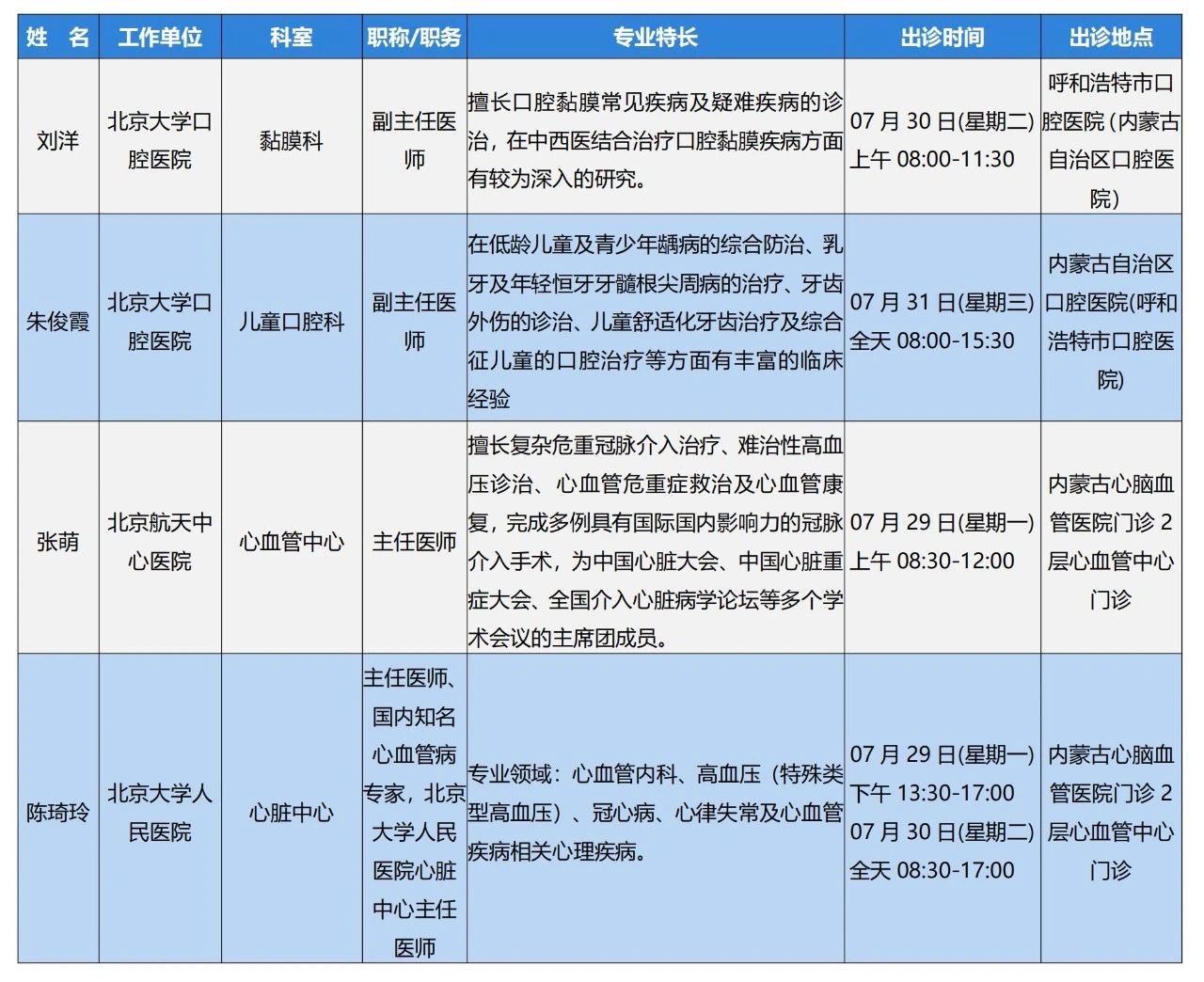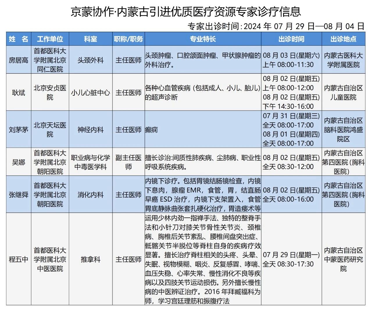 “京蒙协作”|本周北京协作医院专家出诊安排