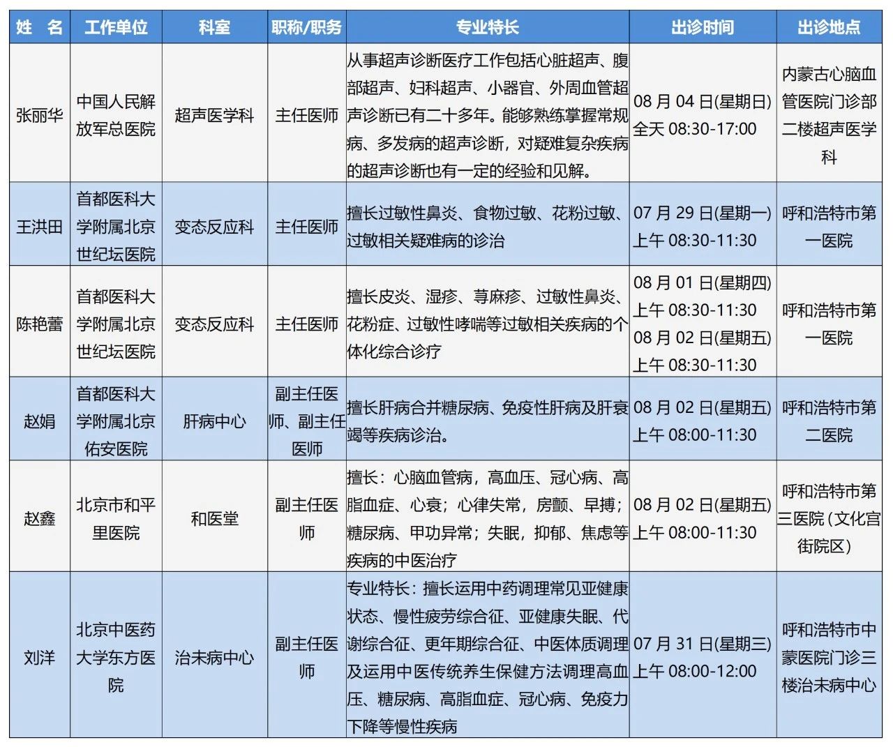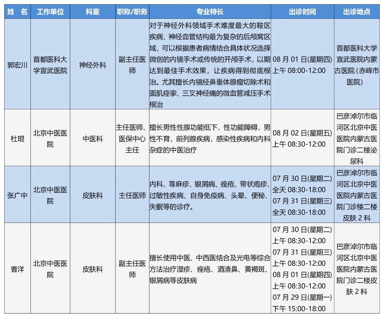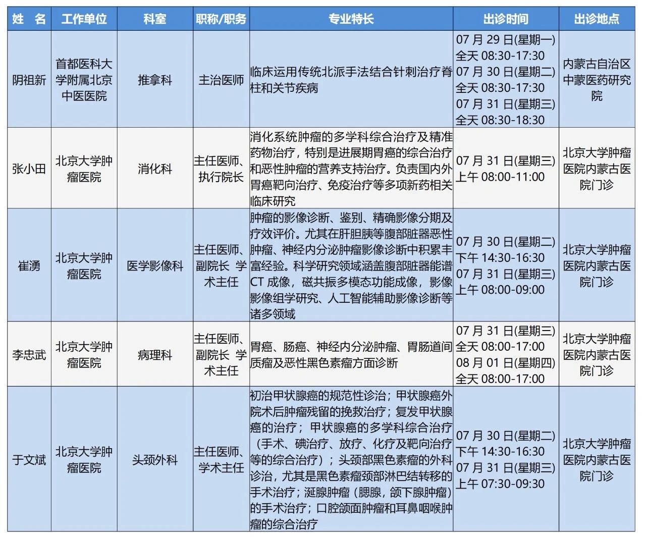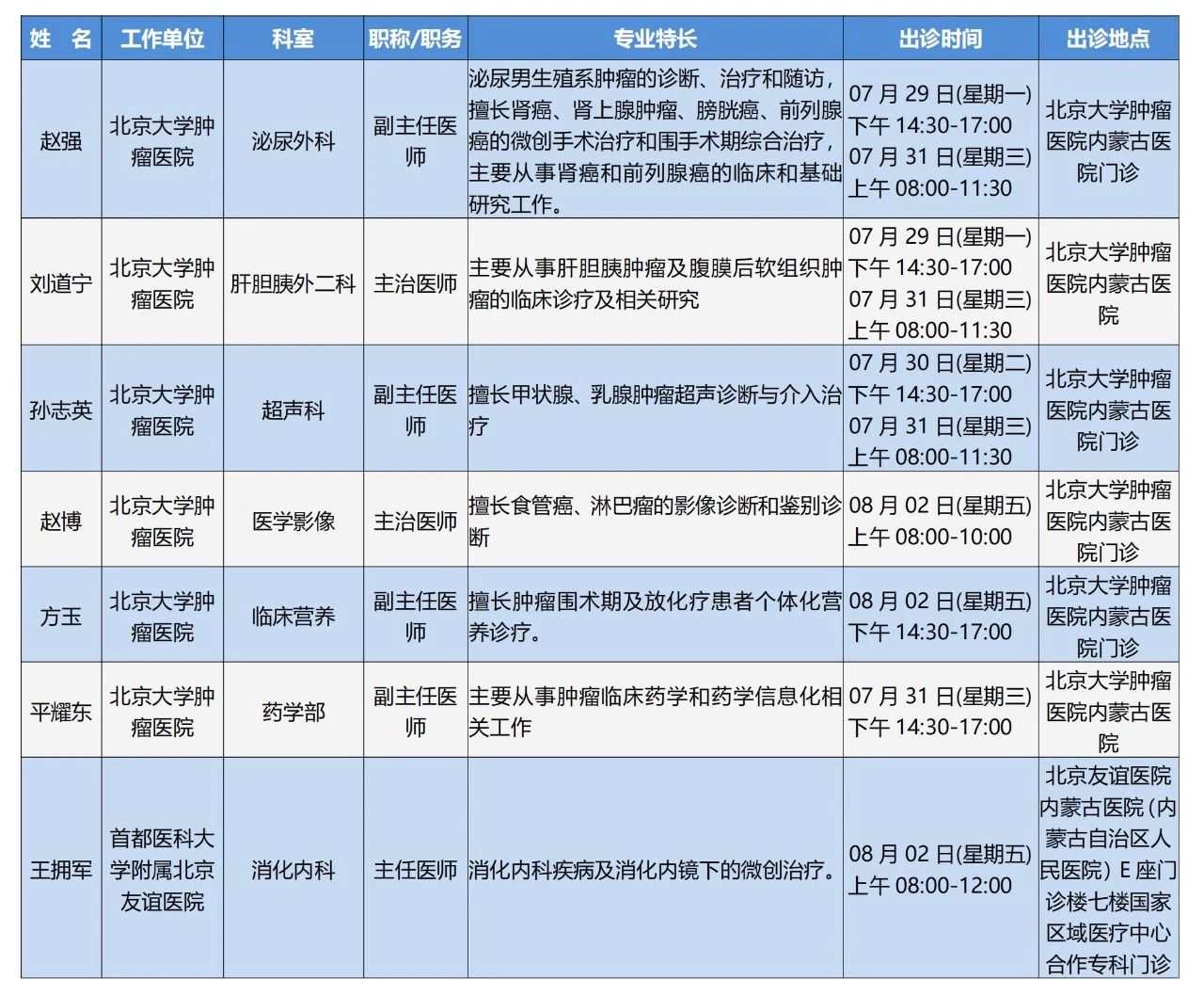 “京蒙协作”|本周北京协作医院专家出诊安排