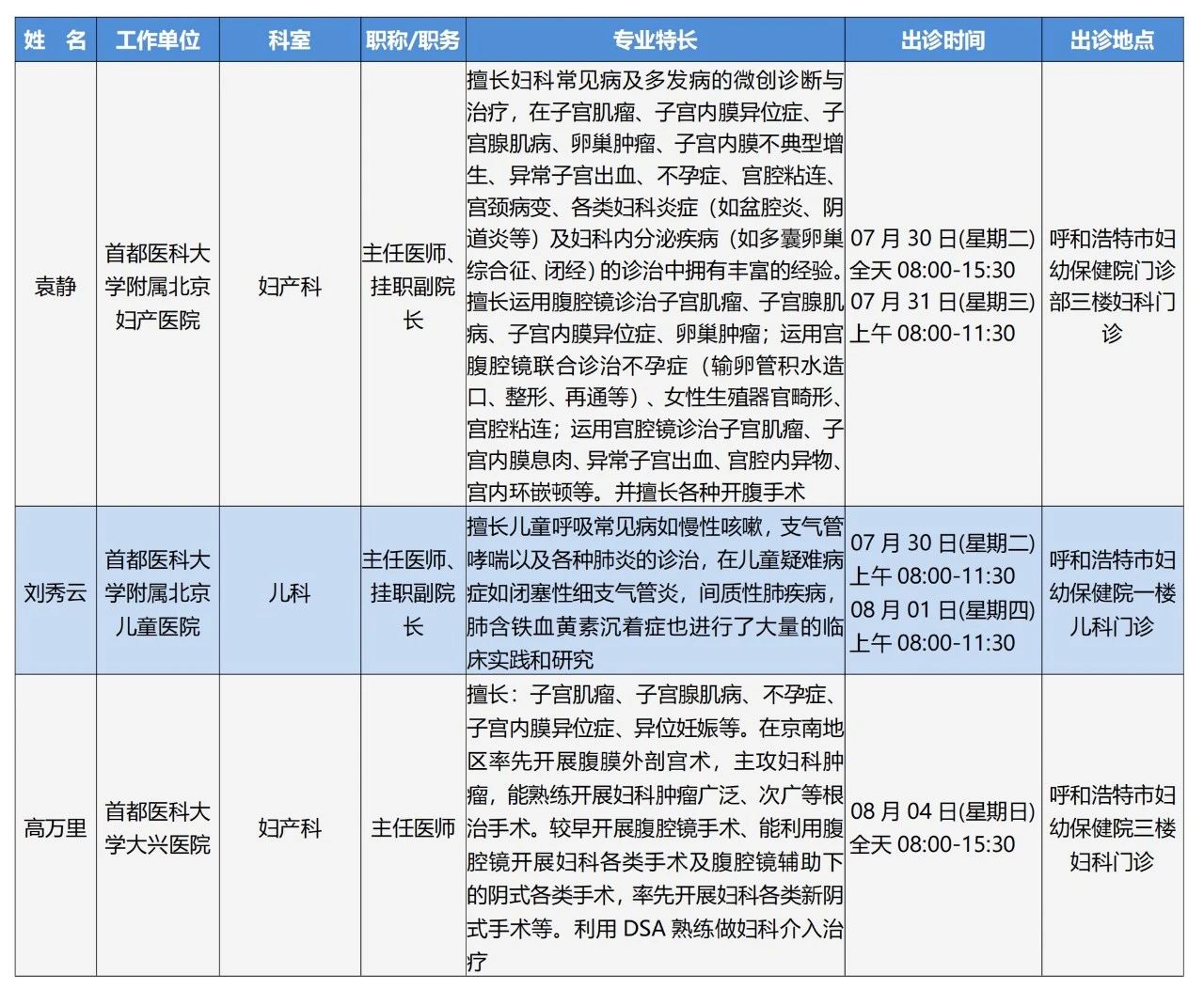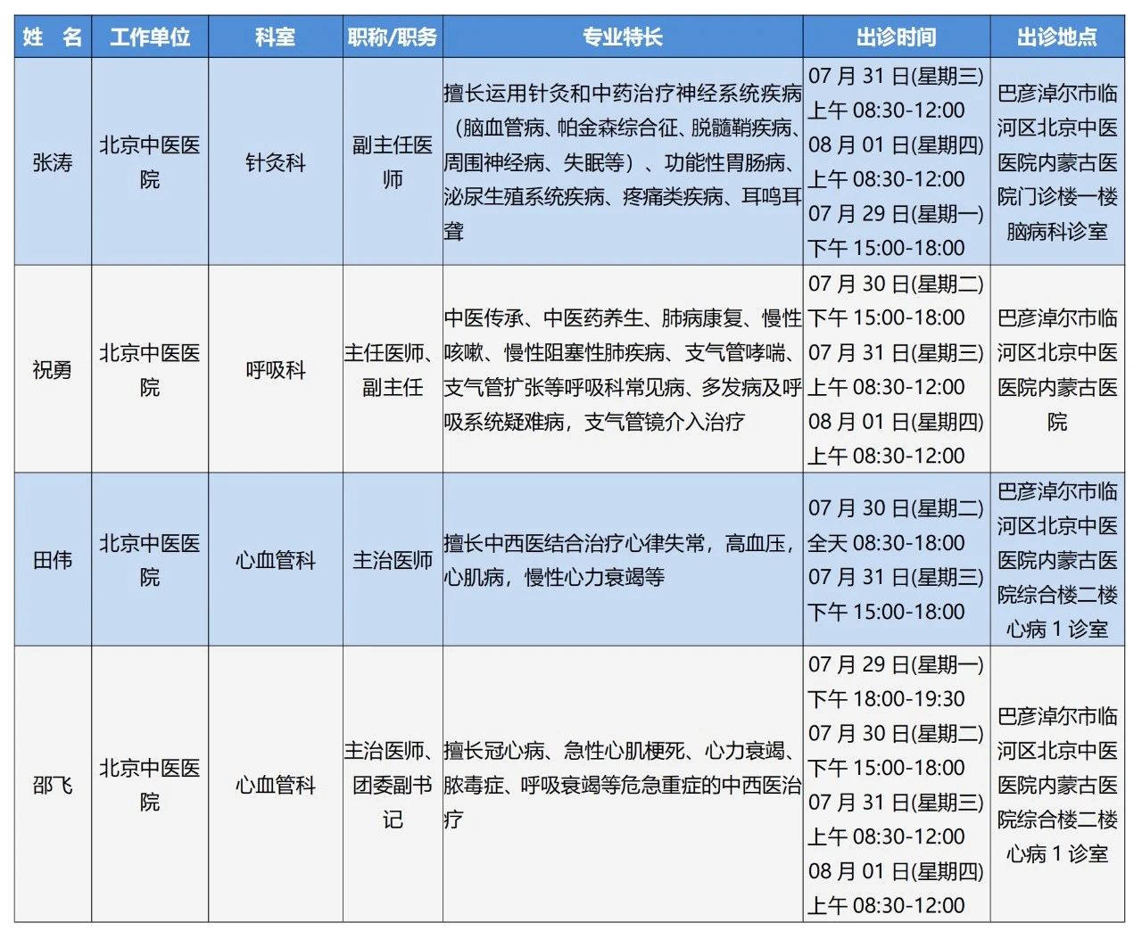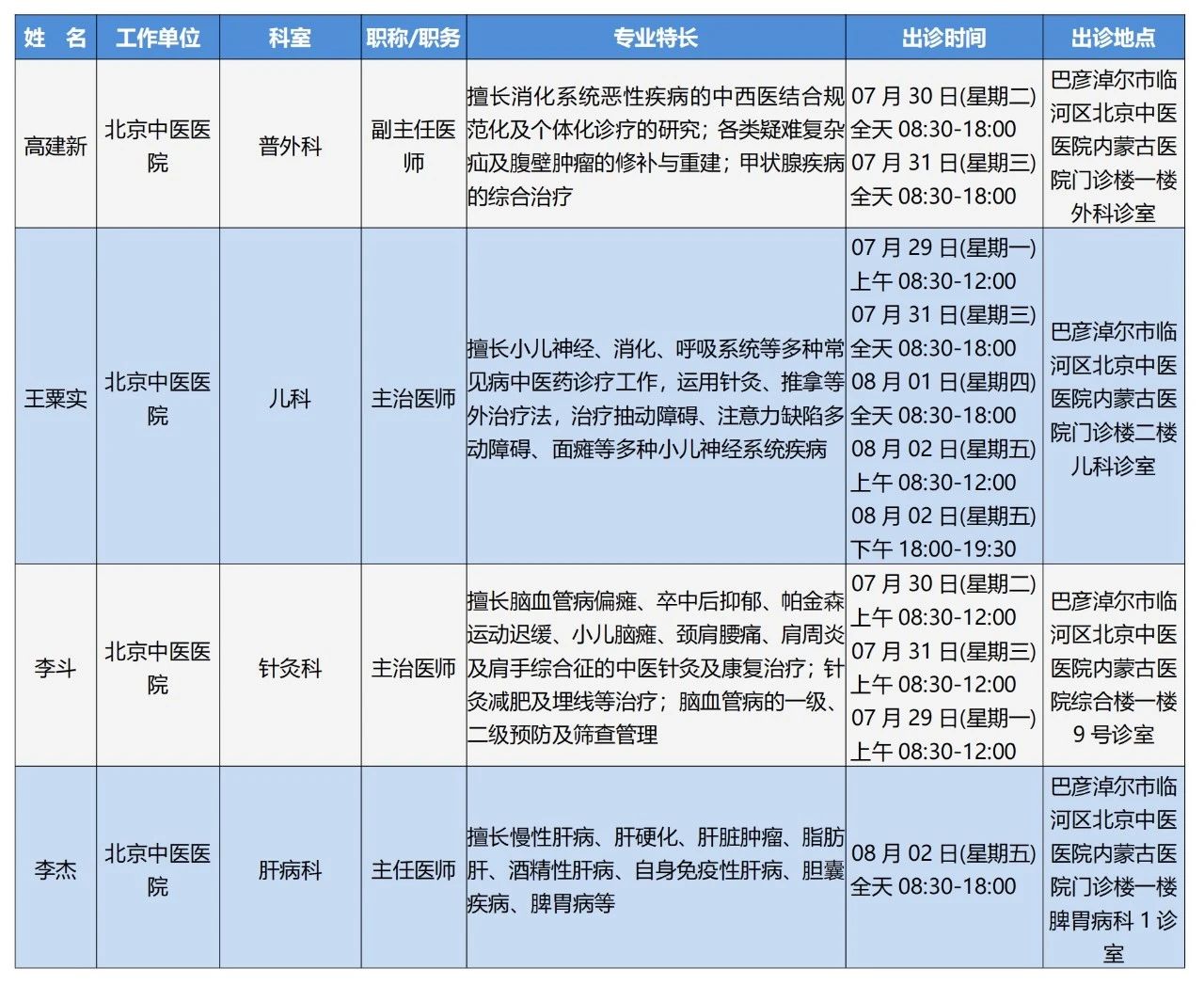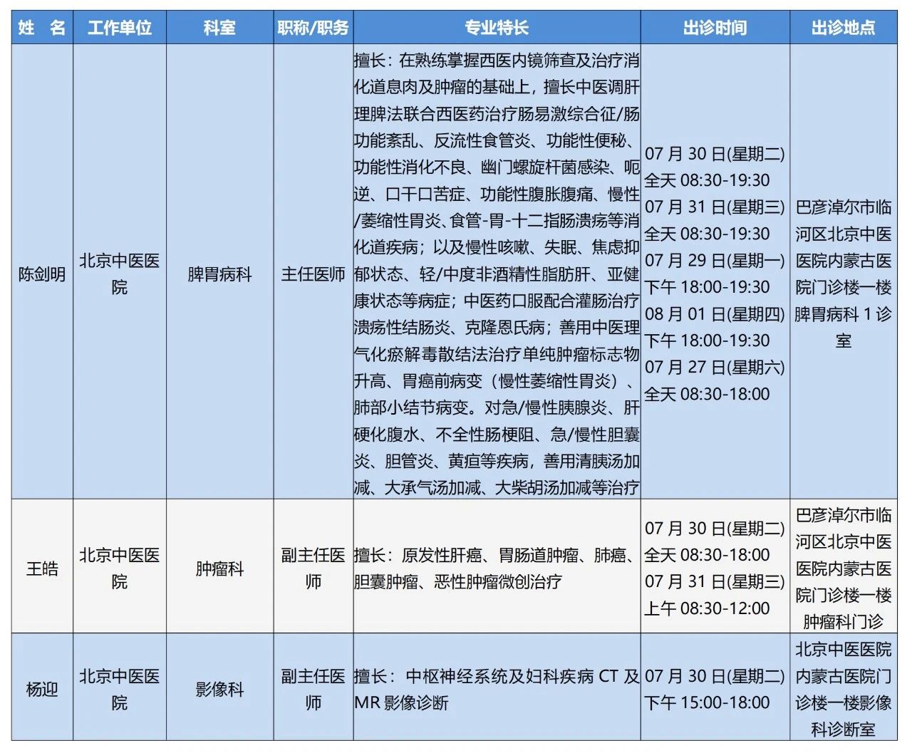 “京蒙协作”|本周北京协作医院专家出诊安排