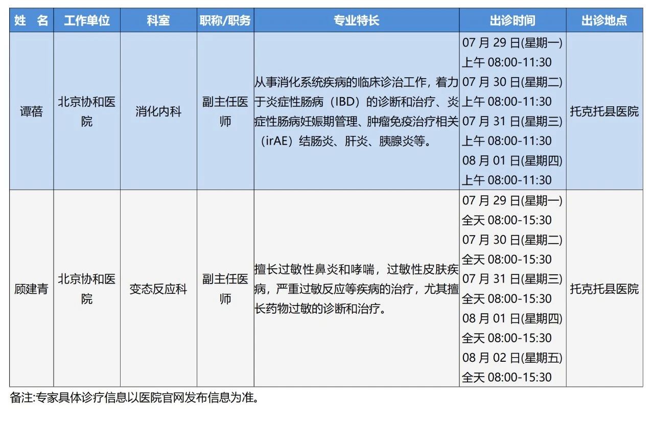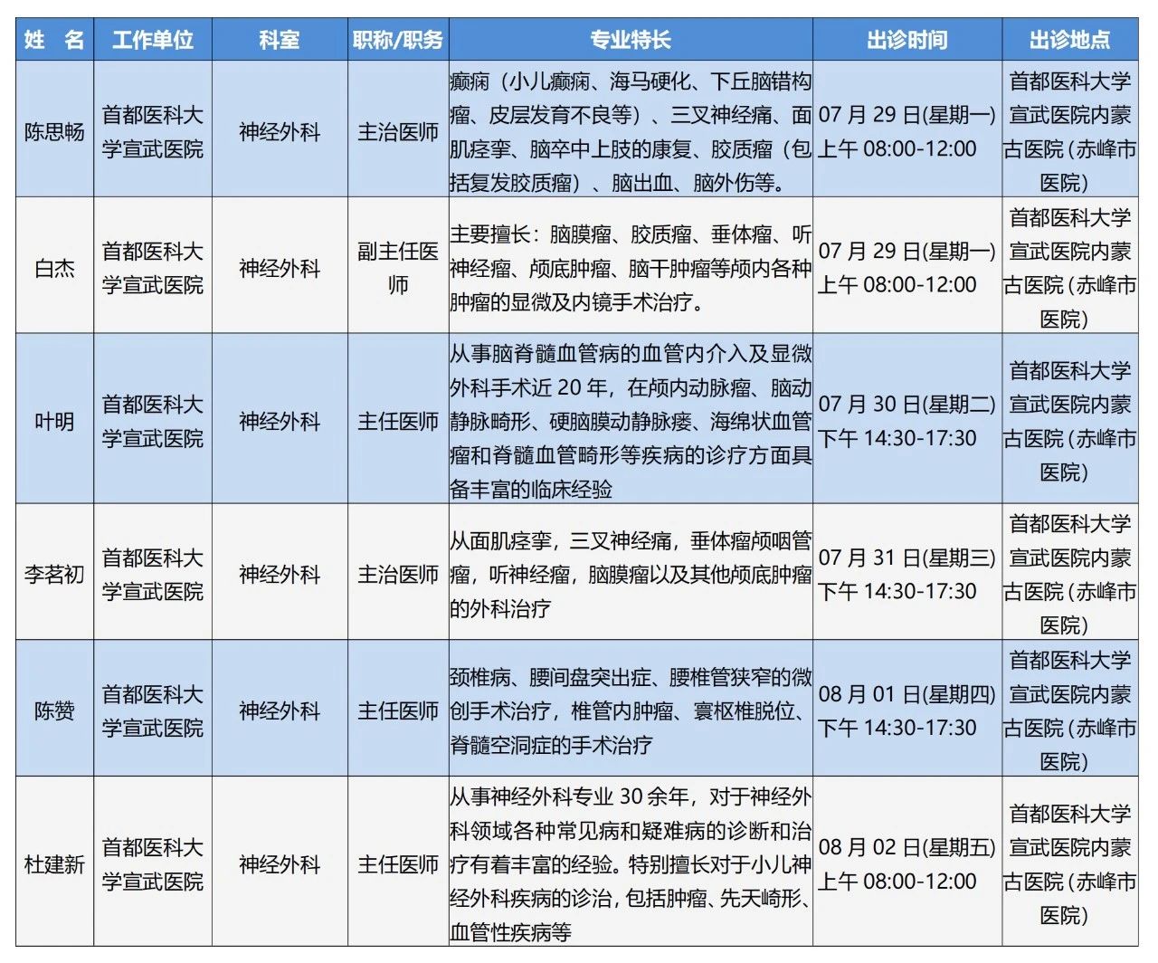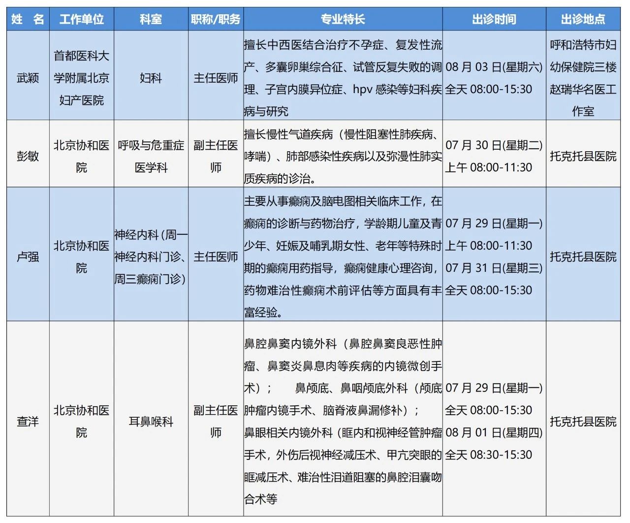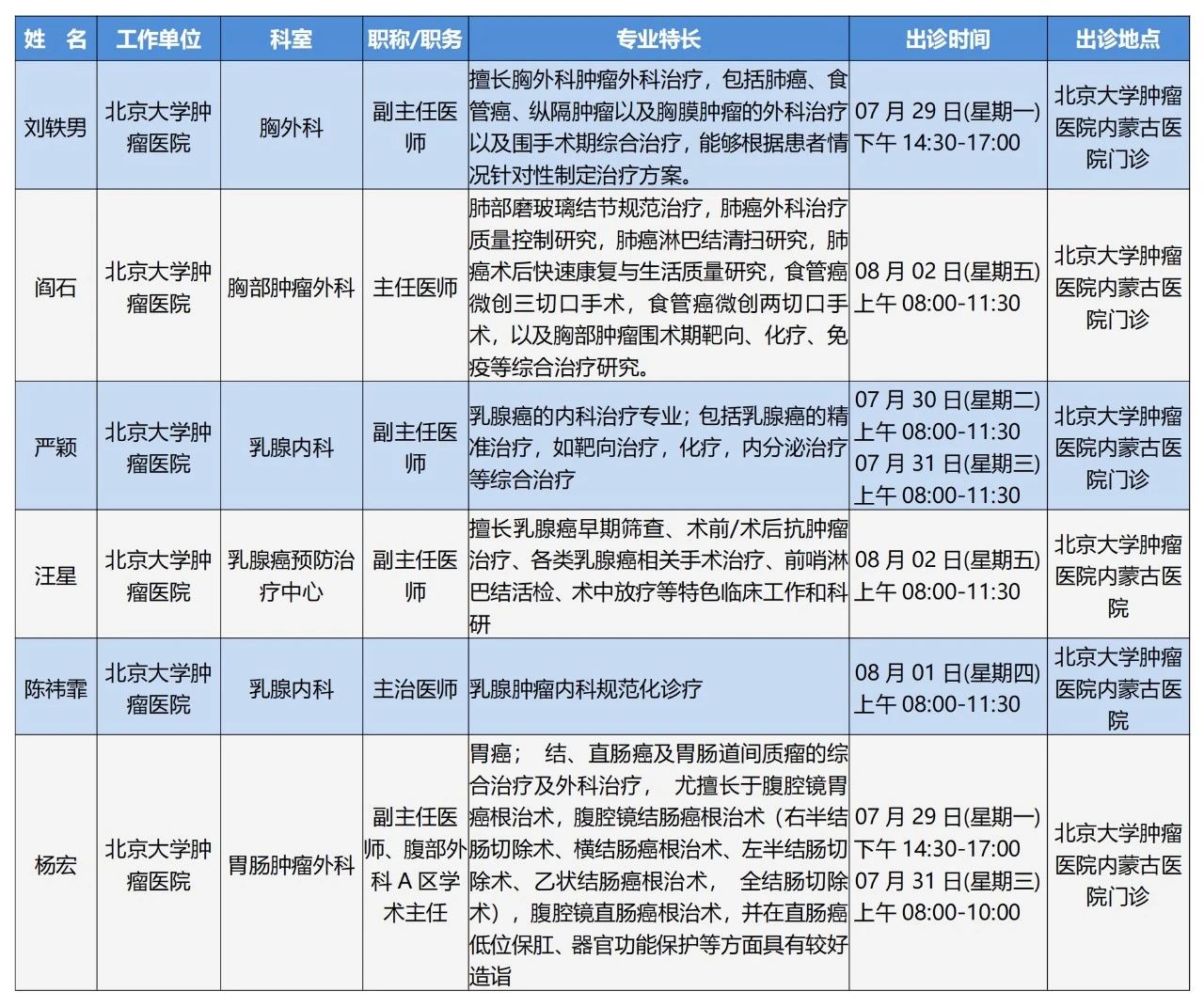 “京蒙协作”|本周北京协作医院专家出诊安排