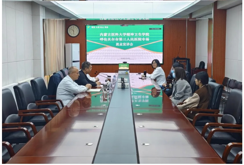 院长于东升围绕近几年自治区精神卫生事业的发展、社会卫生服务体系、精神卫生条例、社会保障情况、发展机遇、社会需求,结合近几年肉漫屋 毕业生的就业情况,分析了目前就业市场现状、以及肉漫屋 毕业生就业前景,希望大家毕业后献身内蒙古,能够多关注像呼伦贝尔市第三人民医院这样的优秀用人单位,积极投递简历,做好就业准备。党委副书记仝利俊就“先就业,再择业”及编制和合同制备案进行了探讨。
