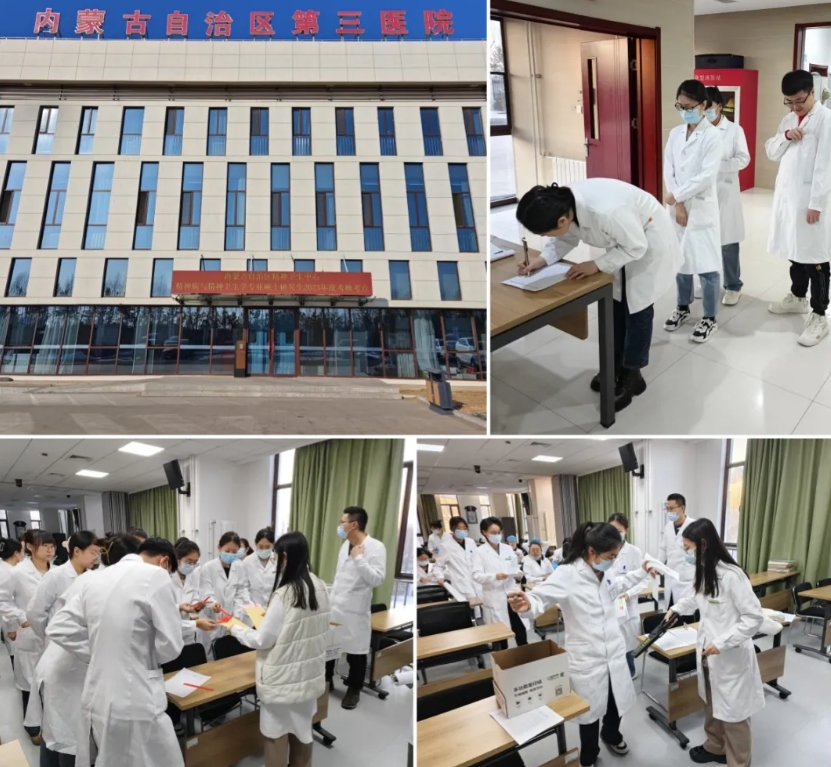 为进一步评估研究生一年以来对所学知识的掌握和应用能力,按照《内蒙古医科大学2023年度临床医学类(临床医学、口腔医学、中医学、蒙医学)专业学位研究生规培年度考试的通知》要求,在院领导的部署安排下,2024年1月3日、8日和9日在鸿盛院区教学楼开展精神病与精神卫生学专业硕士研究生2023年年度考核工作,2021级和2022级共34名研究生参加。