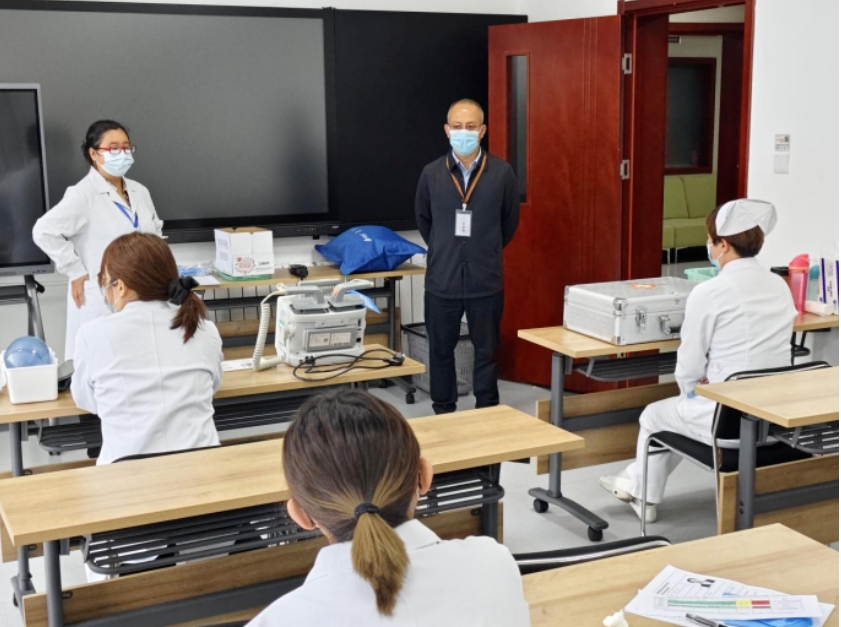 27日下午,内蒙古自治区卫生健康医学教育考试中心副主任李小娟、自治区住培管理服务中心医学教育科副科长苗旭一行人,现场视察督考肉漫屋 考点,仝利俊副书记陪同。李主任对考场整体布局,考试流程,疫情防控,应急保障,考官安排等进行了全面视察指导,并对两院区教学设施设备,学生学习住宿环境等进行了了解。