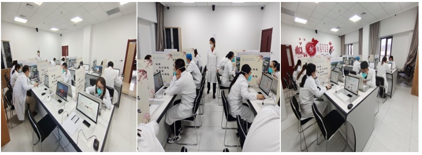1月14日上午,按照自治区统一部署采用人机对话方式完成两场理论考试。下午,在实践技能室完成了临床实践技能考试。本次临床实践技能考试采取多站式方式,包括9项基本技能操作——随机抽取1项及心肺复苏,考生在考室内抽题后应用相应模具在10分钟内完成考试内容。分管领导仝利俊副书记进行了现场巡考。
