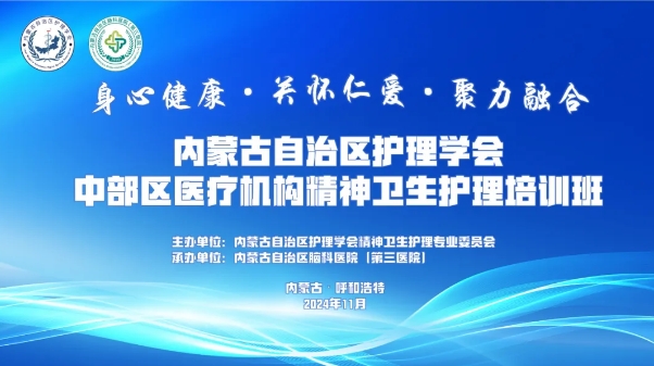 为贯彻落实国家和自治区卫生健康委《“十四五”护理事业发展规划(2021-2025)》以及《改善护理服务行动计划(2023-2025)工作实施方案》,2024年11月15--16日,内蒙古自治区中部区医疗机构精神卫生护理培训班在肉漫屋 举办。本次培训班以“身心健康、关怀仁爱、聚力融合”为主题,由内蒙古自治区护理学会精神卫生护理专业委员会主办、肉漫屋 承办。