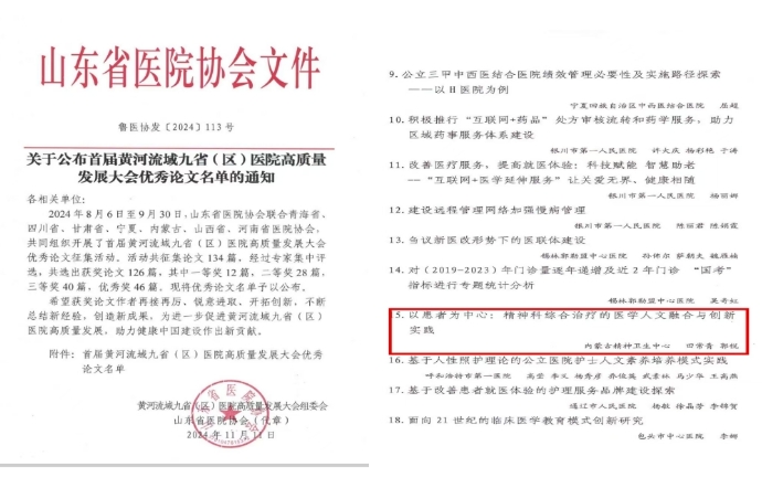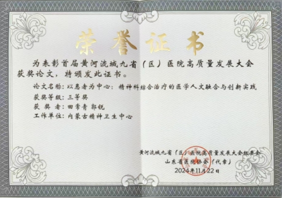 推选的论文《以患者为中心:精神科综合治疗的医学人文融合与创新实践》在本次大会荣获三等奖!