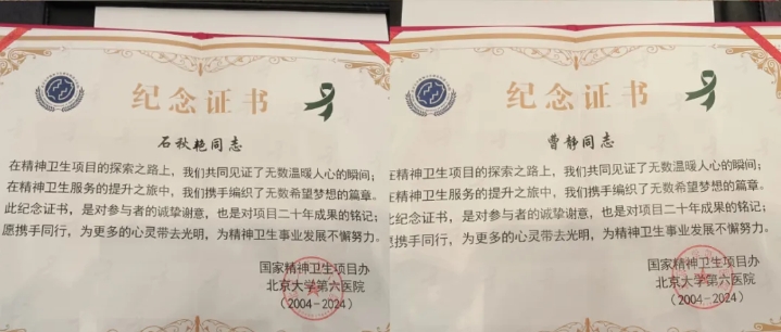 【喜讯】精神卫生工作辉煌走过20年见证我区精神卫生发展历程的人员受到国家表彰