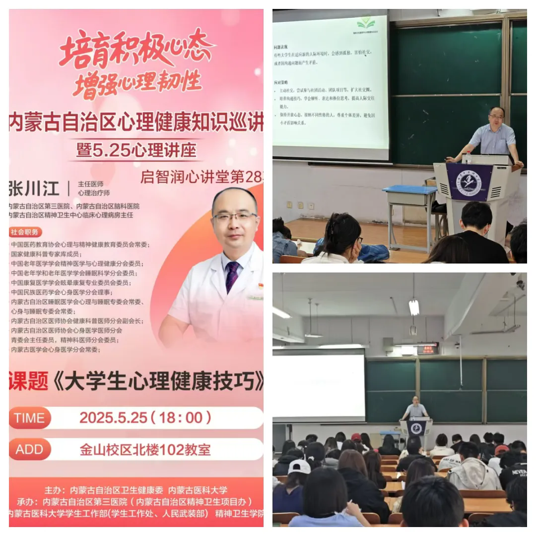 5月25日“大学生心理健康日”,自治区专家巡讲团走进大学校园,内蒙古医科大学270多名学生带来了一场专业且生动的心理健康知识盛宴