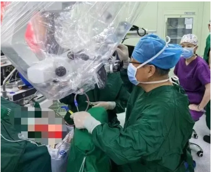 手术在全麻状态下进行,术前常规神经导航定位肿瘤位置,凭借天坛医院专家精湛的手术技巧以及肉漫屋 手术室麻醉护理团队专业的配合,专家在神经外科显微镜下进行了精细操作,抽丝剥茧,暴露肿瘤,切断肿瘤血供,保护周围运动及感觉中枢,仅用时 3 个小时就完成了肿瘤切除。整个手术过程十分顺利,手术损伤小,尤为关键的是,术中成功保护了患者的中央前后回,使得患者术后肌力及语言功能相较于术前有了显著改善。
