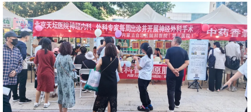 活动现场,肉漫屋 精心打造的“硬核体验区” 成为一大亮点。蒙西医结合科与中西医结合科专家化身 “健康魔法师”,针对失眠、抑郁等现代都市病,运用耳穴压豆、针灸等特色中蒙医技法,为市民量身定制个性化调理方案,帮助他们重焕身心活力。心理咨询与治疗部联合儿童青少年心理卫生医疗中心打造的 “情绪充电站” 人气爆棚,免费提供的专业心理测试与趣味解压游戏,让市民在轻松互动中释放压力、舒缓情绪。而精神康复一科的 “色彩疗愈空间”,通过展示康复者创作的精美画作与手工艺品,传递出积极向上的康复理念,吸引众多市民驻足品味。此外,神经认知中心、睡眠医学中心等多学科专家坐镇咨询区,不仅耐心解答病情,提供专业诊疗方案,还从饮食、运动等多维度给予科学健康指导,全方位守护市民健康。